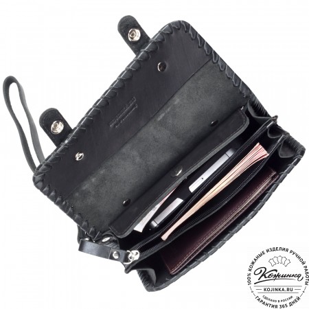 У этой модели есть одна отличительная особенность - в ней очень удобно носить телефон, который можно разместить в одном из боковых отделений (поместится телефон формата iPhone 4/4s/5/5s/6/6s). Другое отделение подойдет для купюр, причем это могут быть банкноты практически любой валюты мира.