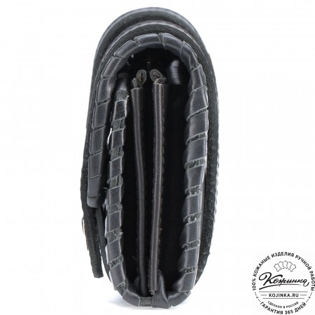 Кожаное портмоне "Арни" (черный антик) – стильное портмоне slim-формата из натуральной кожи.