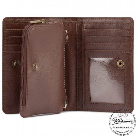 Кожаное портмоне "Пушкин" (оливковое) - вместительное стильное портмоне из мягкой качественной кожи.