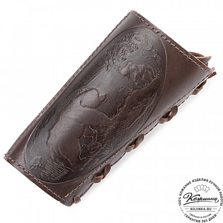 С одной стороны выполнено тиснение на охотничью тему.