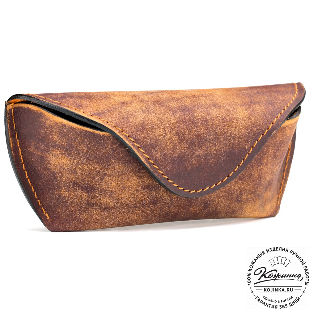 Футляр изготовлен из жёсткой толстой кожи высочайшего качества. Он отлично держит форму и надежно защищает очки от повреждений.