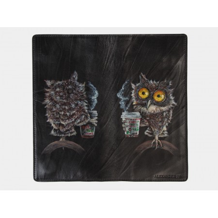 Кожаная сумка "Утренняя сова" - небольшая женская сумочка с забавным рисунком.