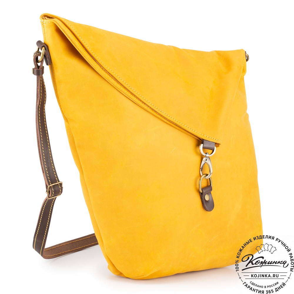 Кожаный ремень через плечо регулируется по длине.