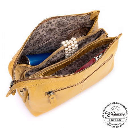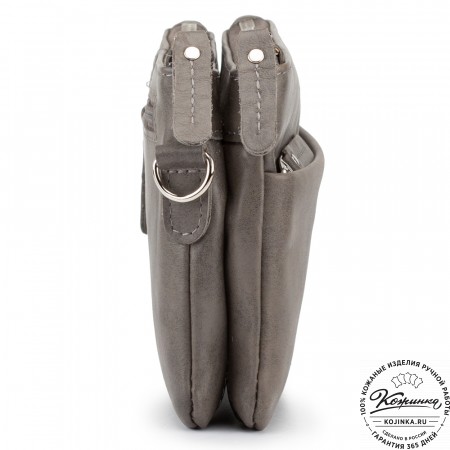Сумочка изготовлена из качественной натуральной кожи, имеет одно отделение, которое закрывается на молнию. Сверху сумочка закрывается клапаном на магнитной кнопке.