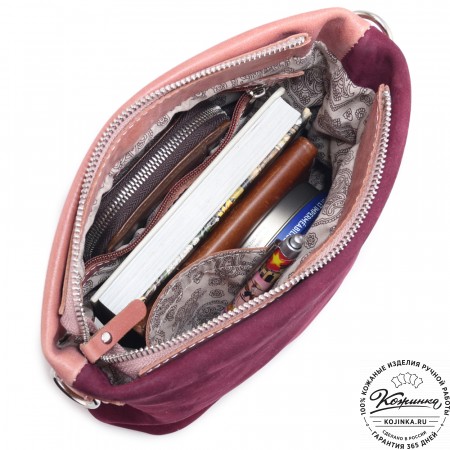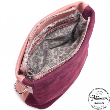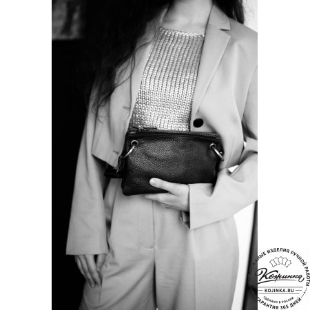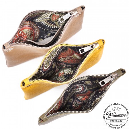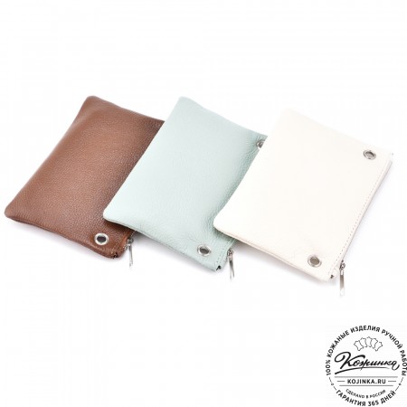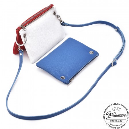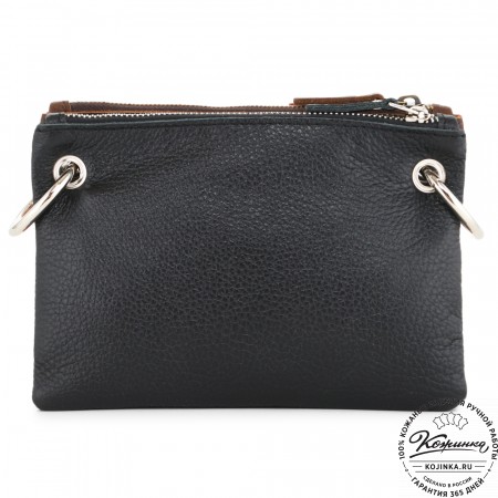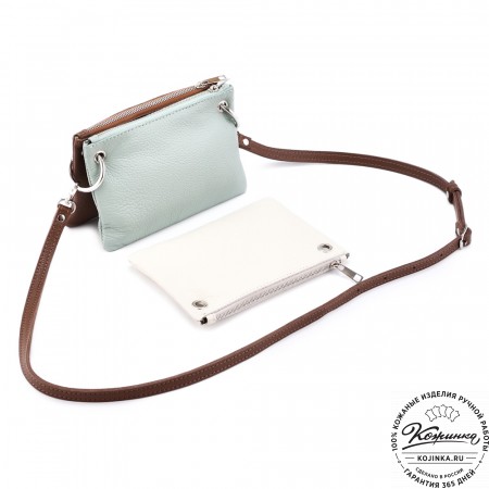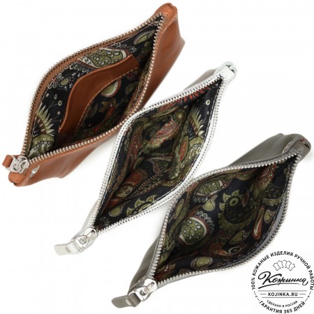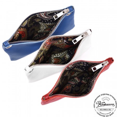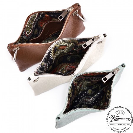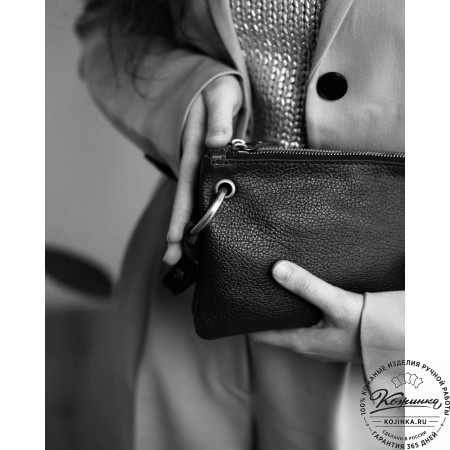 В комплекте с сумочкой идет кожаная ключница на молнии, которую можно прикрепить внутри на небольшой карабин, для чего предусмотрены специальные петельки.