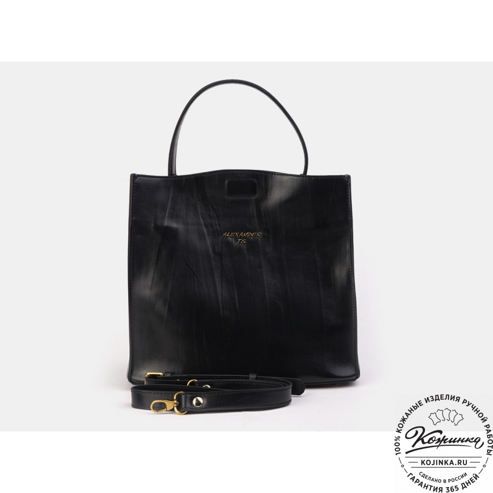 Женская кожаная сумка "Синтия" (чёрная гладкая кожа) – удобная и практичная модель на каждый день. Выполнена из высококачественной натуральной кожи с необычной фактурой.