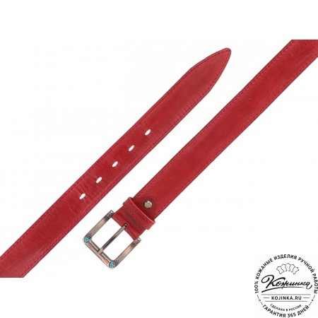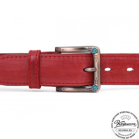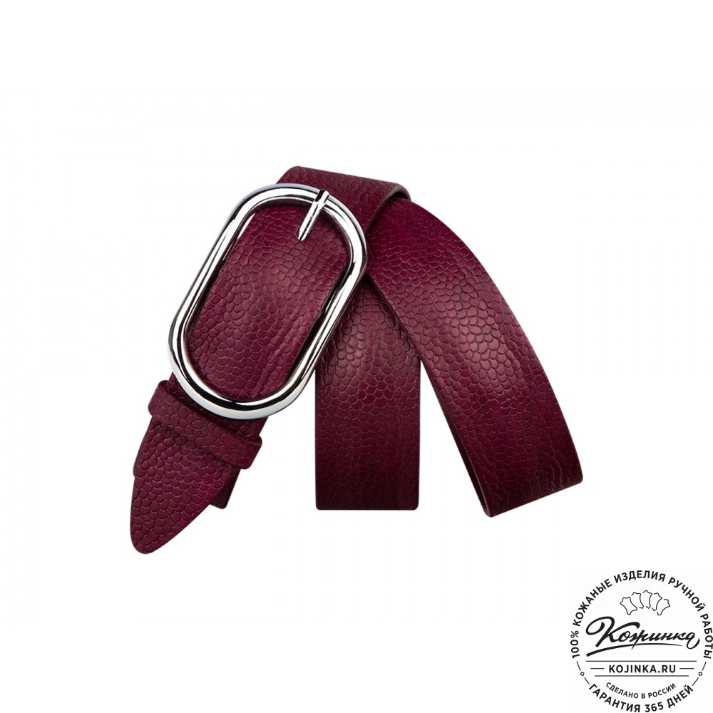 Кожаный ремень B40-1306 (бордо) - женский джинсовый ремень из фактурной натуральной кожи.