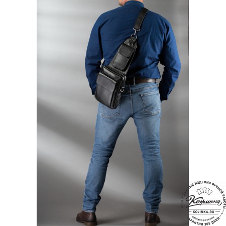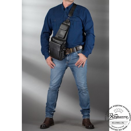 Кожаная нагрудная сумка "Аполлон" (чёрная) - самый удобный аксессуар для документов и денег!