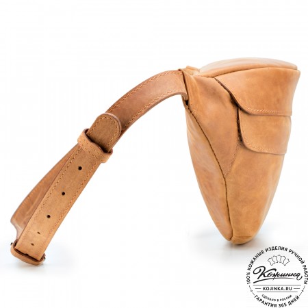 Лямка из кожи, усилена стропой, регулируется по длине.