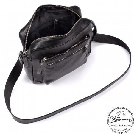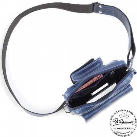 Лямка из кожи, усилена стропой, регулируется по длине.