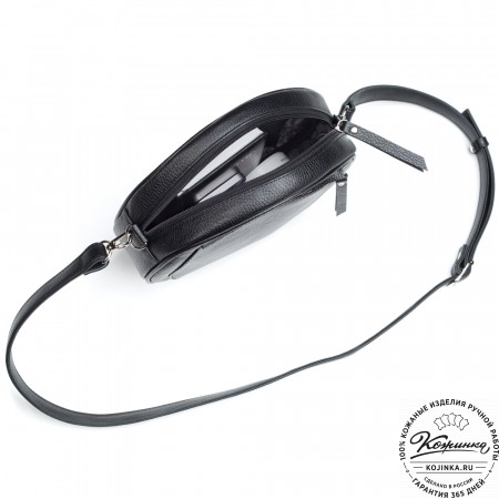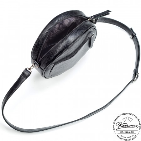 Плечевой ремень регулируется по длине, выполнен из кожи и усилен стропой для прочности.