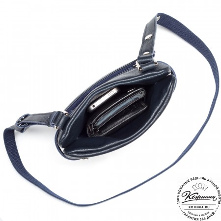 Лямка из кожи, усилена стропой, регулируется по длине.