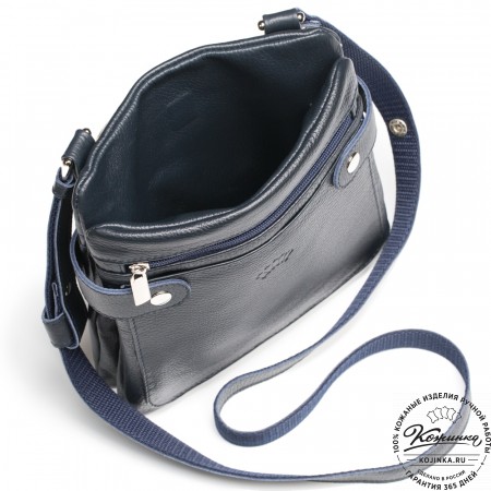 С лицевой стороны расположены два кармана на молнии. Еще по одному карману на задней стенке сумки и на лямке.