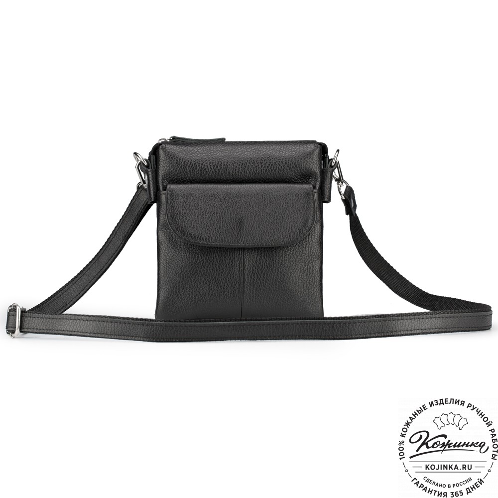 Кожаная сумка "Вуди" (чёрная) - удобная маленькая сумочка из натуральной кожи. В такую сумку поместятся все самые нужные вещи – телефон, документы, кошелек, ключи. Незаменима в путешествии или на прогулке!
