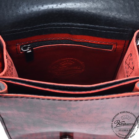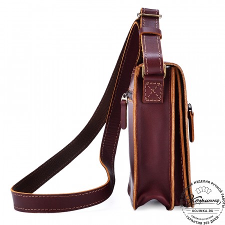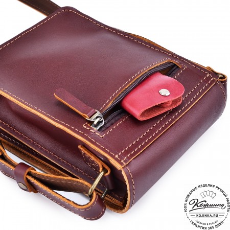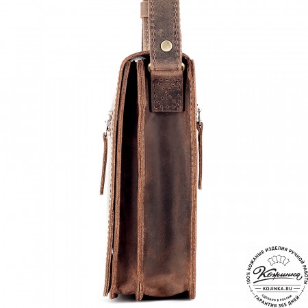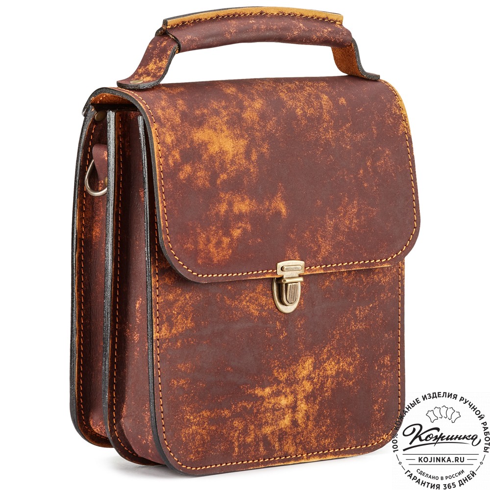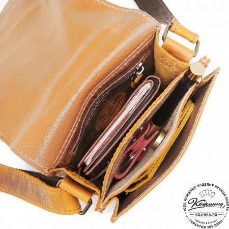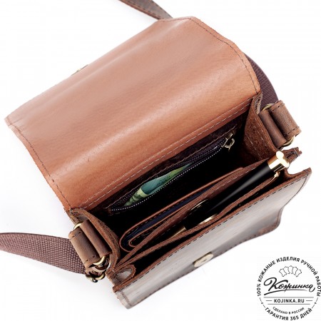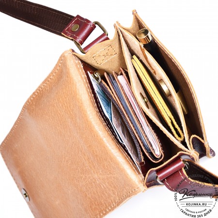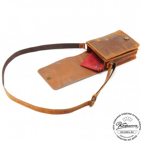 Плечевой ремень выполнен из кожи. Ремень съемный, крепится на карабины, регулируется по длине ременной пряжкой.