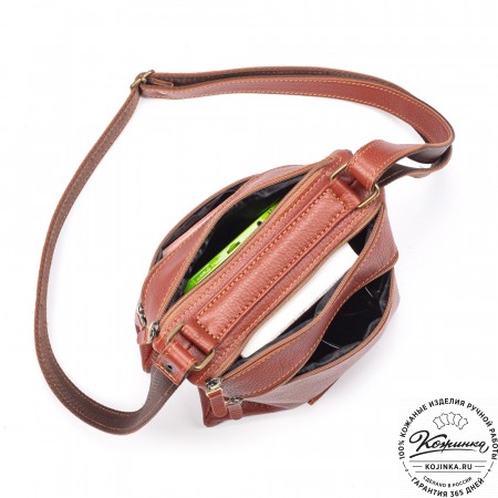 Длинный кожаный плечевой ремень съемный, крепится на металлические карабины, регулируется по длине.
