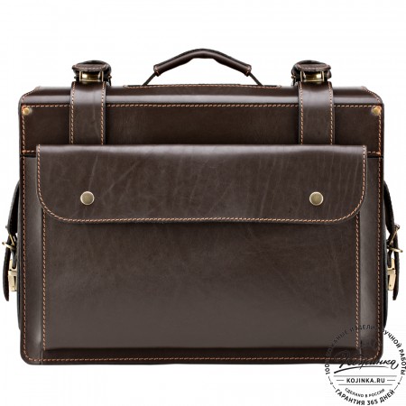 Кожаный портфель-кофр "Адъютант" (чёрный) представляет собой одно большое основное отделение из 100% толстой кожи с большим накладным карманом спереди.