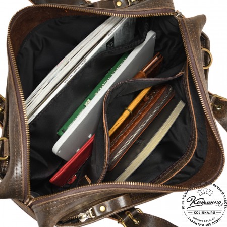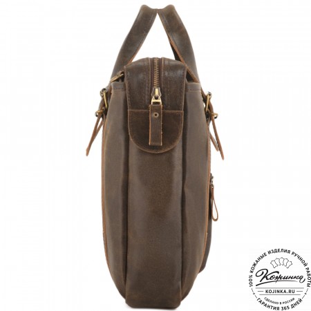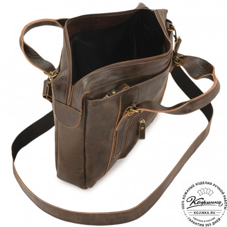 На фото модели представлена сумка "Марк" коричневый крейзи.