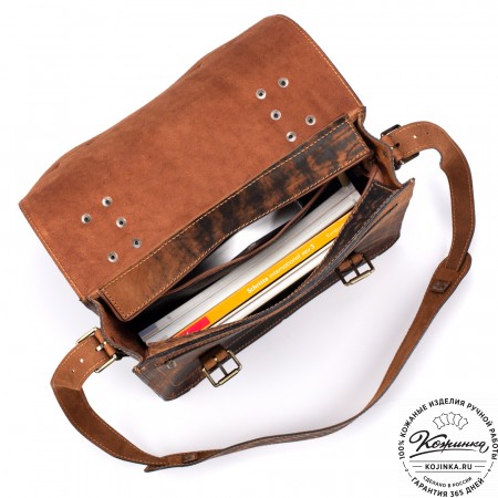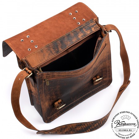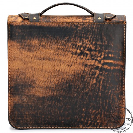 Портфель закрывается клапаном на два портфельных замка, спрятанных под ременными пряжками.