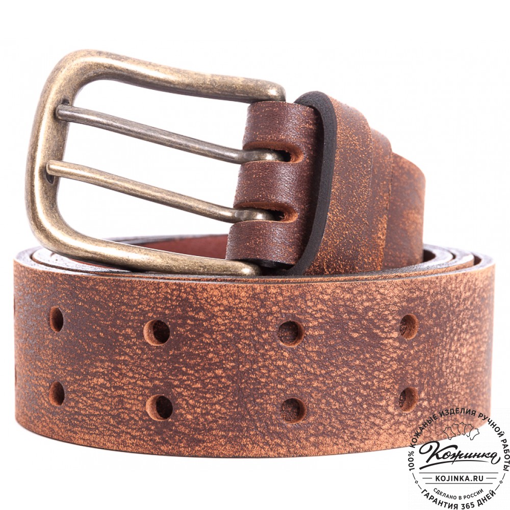 Кожаный мужской ремень "Адам" (эксклюзив) - ремень из толстой шорно-седельной кожи с классической пряжкой на 2 отверстия.