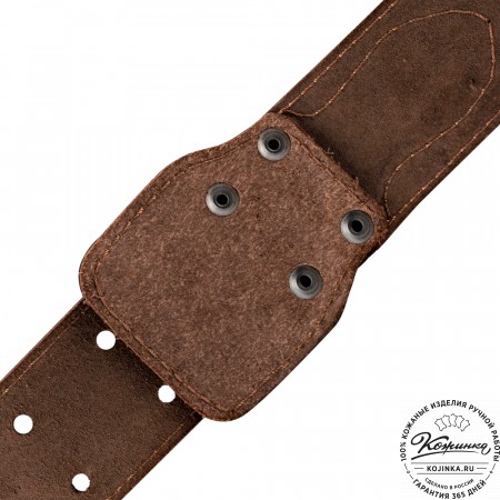 Толстая грубая шорно-седельная кожа высокого качества, тиснения на ремне с эффектом времени, удобная пряжка из латуни.