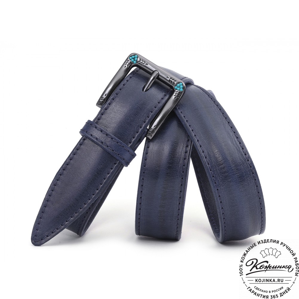 Кожаный ремень "Ирис" (синий) - женский ремень с красивой пряжкой.