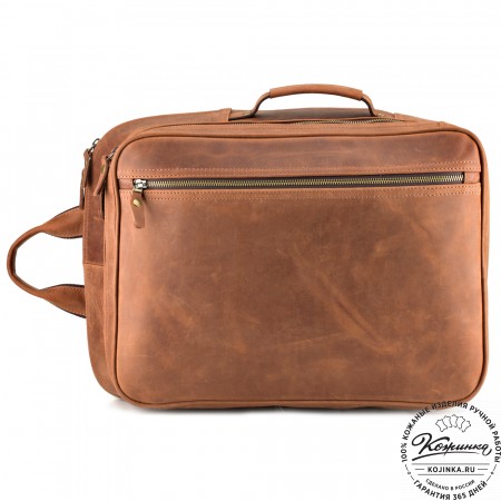 Крепкие кожаные лямки регулируются по длине. Есть удобная ручка.