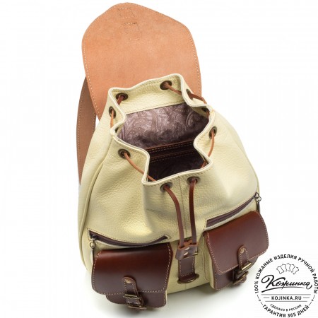 Рюкзак выполнен из качественной отборной кожи европейского производства, а внутри подкладка из полиэстера высокого качества.