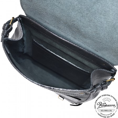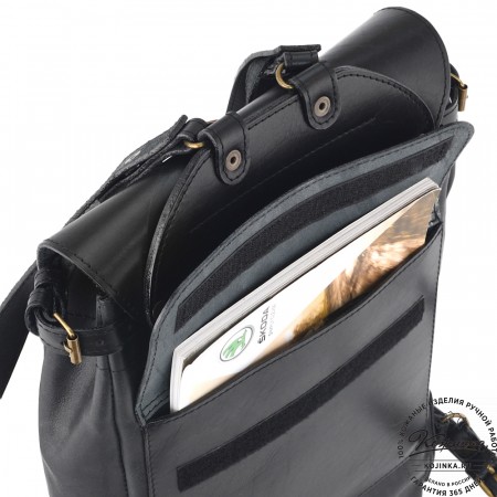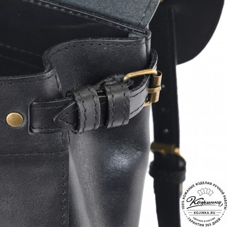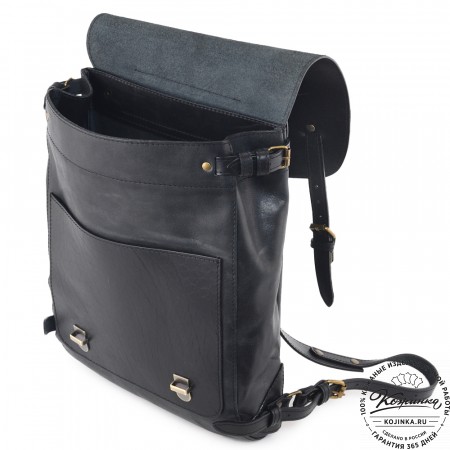 Внутри одно вместительное отделение, с кармашком на молнии. На наружной части два объёмных накладных кармана на липучках. Ещё два объёмных кармана по бокам на классических замках. Крепкие удобные регулируемые лямки. Рюкзак выполнен из толстой жёсткой кожи.