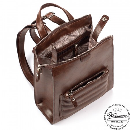 Новая модель была создана на основе повседневных требований наших клиентов! На работу- это классическая сумка под формат А4, в выходные сумка превращается в рюкзак, а на вечерний выход в платье есть уникальная маленькая сумочка, которая отстегивается и одевается с длинным ремешком.