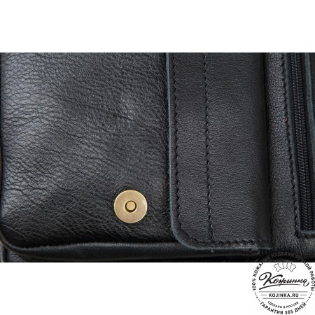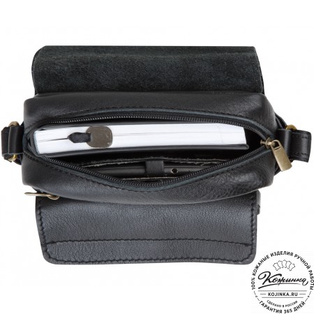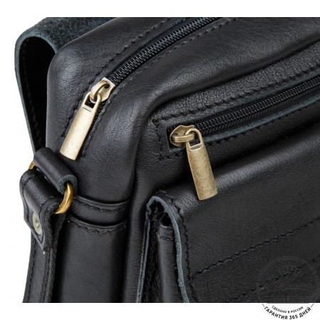 Кожаная сумка "Колин" (черная) – практичная мужская сумка средних размеров.