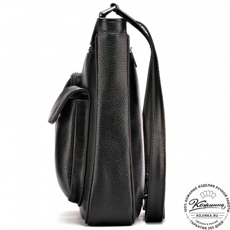 Удобный плечевой ремень регулируется по длине пряжкой. Свободный конец ремня фиксируется кожаным кольцом.