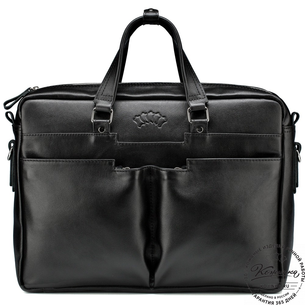 Кожаная деловая сумка "Хантер" (чёрная) – вместительная деловая сумка из прочной натуральной кожи.