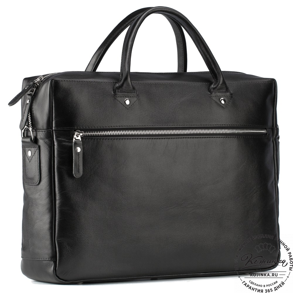 Кожаная деловая сумка "Спайк" (чёрная) – удобная деловая сумка для ноутбука и документов. Строгая и лаконичная модель как снаружи, так и внутри - ничего лишнего, все по делу!