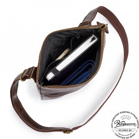 Кожаная сумка "Вуди" (тёмно-коричневый антик) - удобная маленькая сумочка из натуральной кожи. В такую сумку поместятся все самые нужные вещи – телефон, документы, кошелек, ключи. Незаменима в путешествии или на прогулке!
