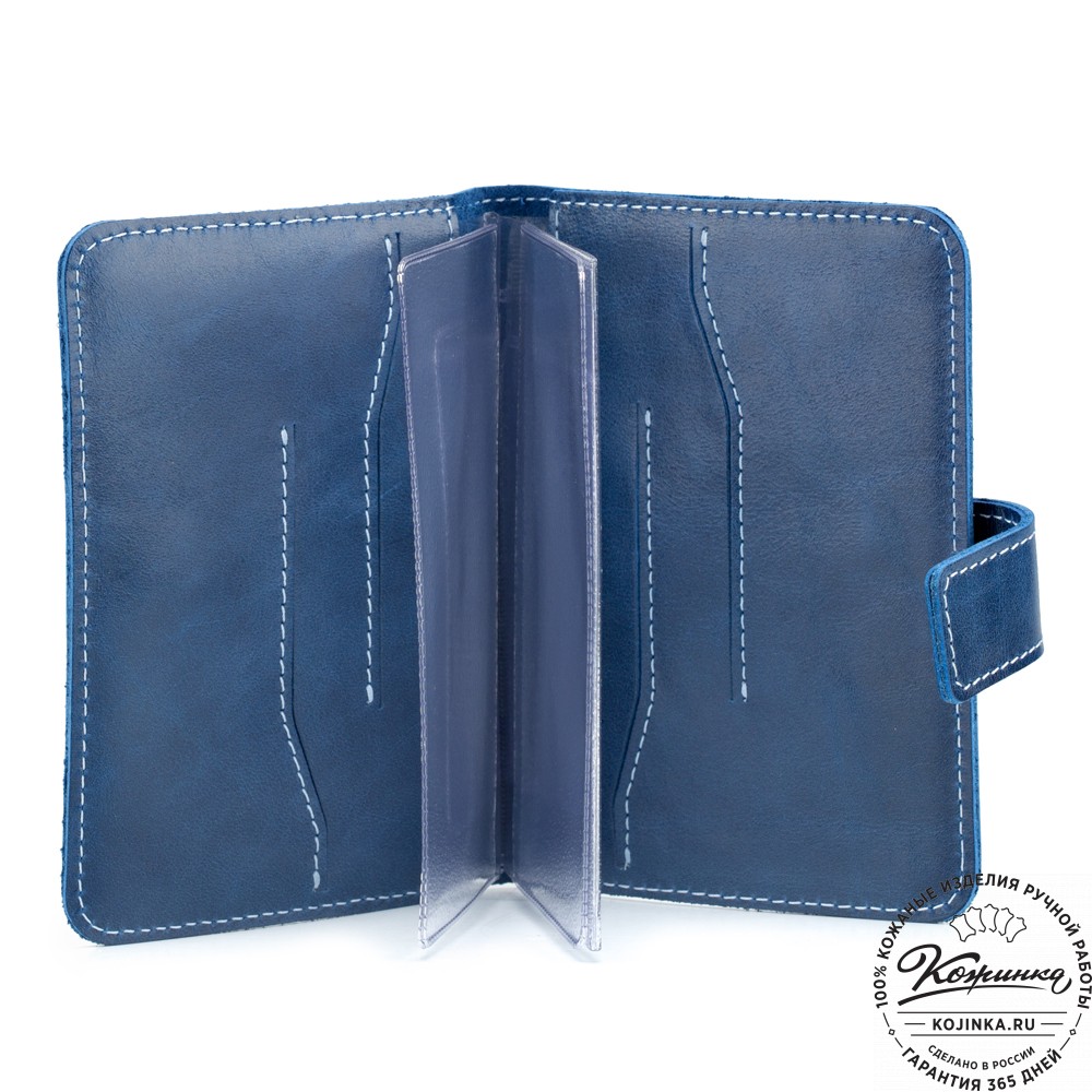 Кожаный бумажник водителя Бостон (синий) - оригинальный и стильный аксессуар.