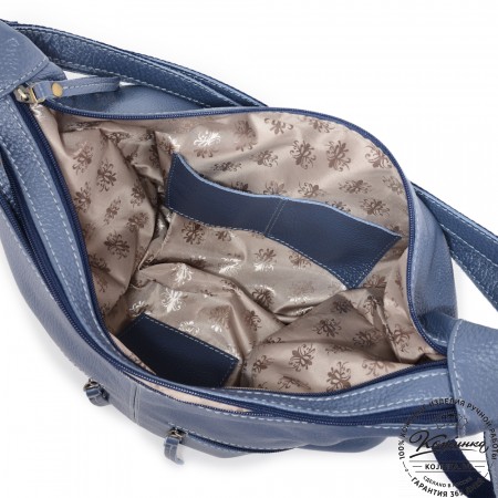 Приятно удивляет качество оформления - рюкзак выполнен из качественной натуральной кожи модного цвета спелой малины. По бокам сумки снаружи имеются карман на молнии для мелочей и с другой стороны скрытый карман на кнопке под кожаным клапаном. Внутри сумки светлая подкладка высокого качества. Имеется карман для телефона.