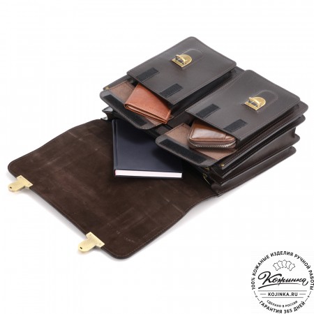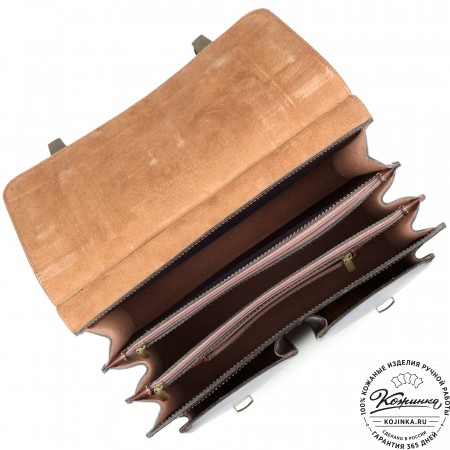 Портфель выполнен из толстой кожи и хорошо держит форму. Идеально подходит для бизнес пользователей.