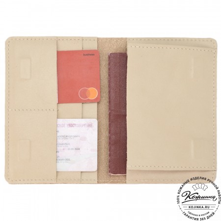 Внутри карман на молнии, большой открытый карман и семь слотов для пластиковых карт. В карманах можно разместить купюры и паспорт.